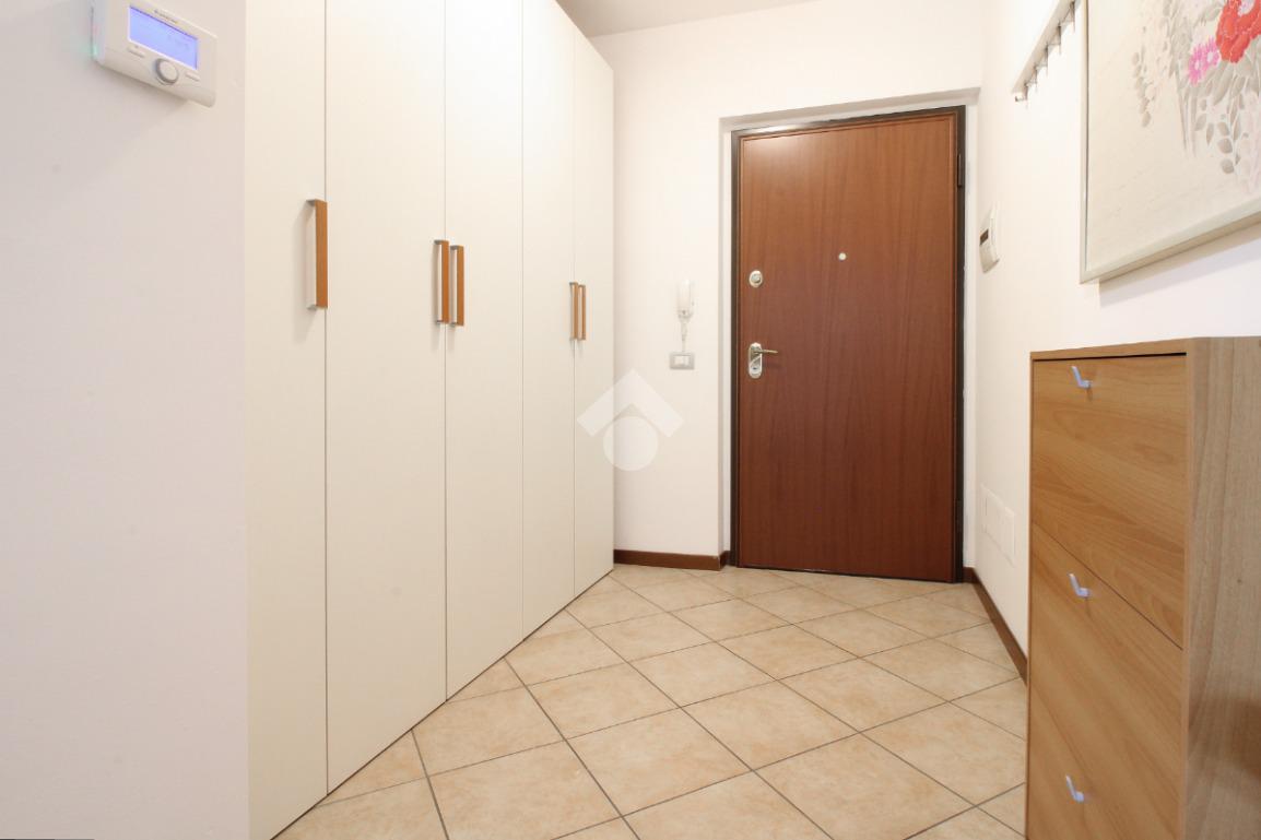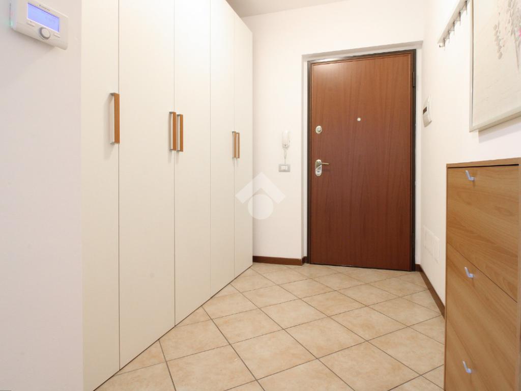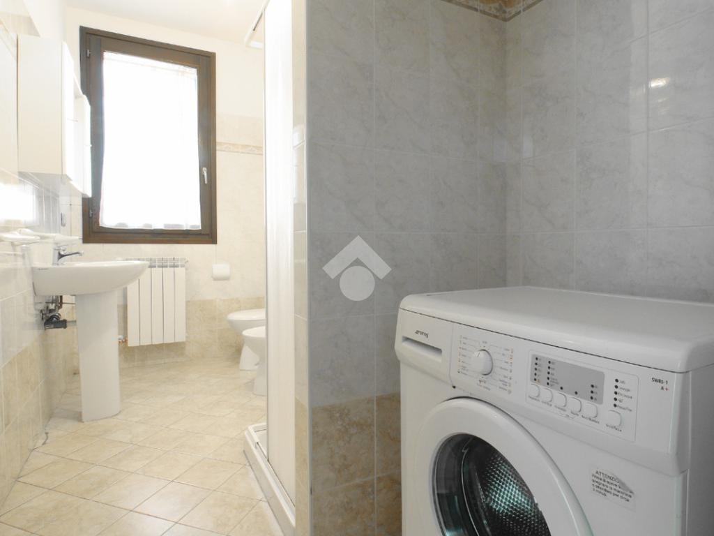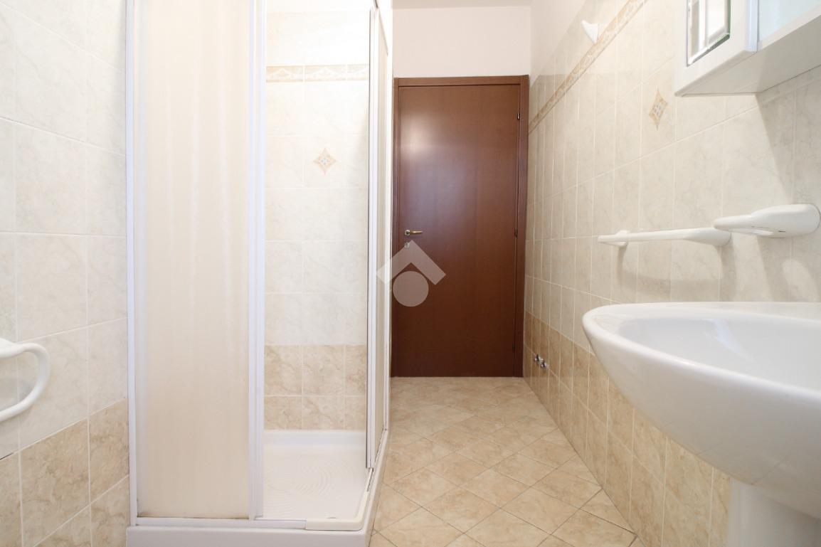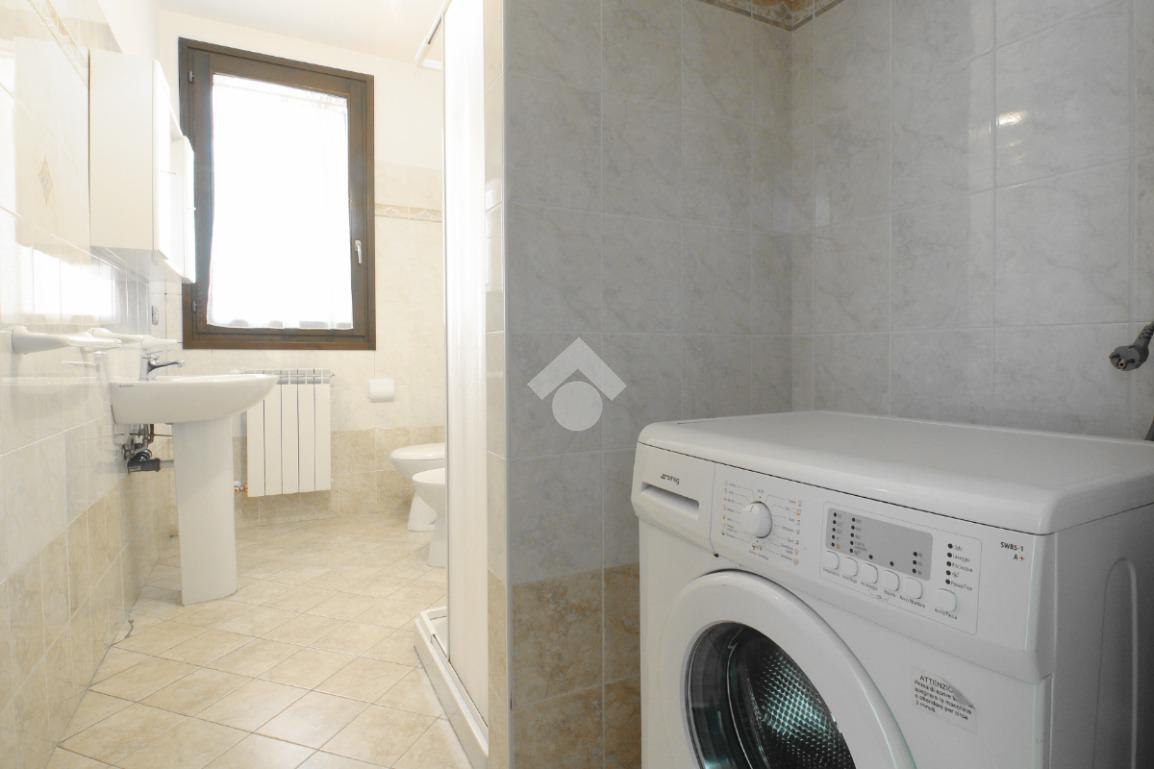 L’ingresso, comodo e funzionale, distribuisce in modo ordinato tutti gli ambienti della casa. Sulla destra si accede a un bagno di generose dimensioni, completo di sanitari, box doccia e attacco per la lavatrice, ben rifinito e facilmente fruibile.