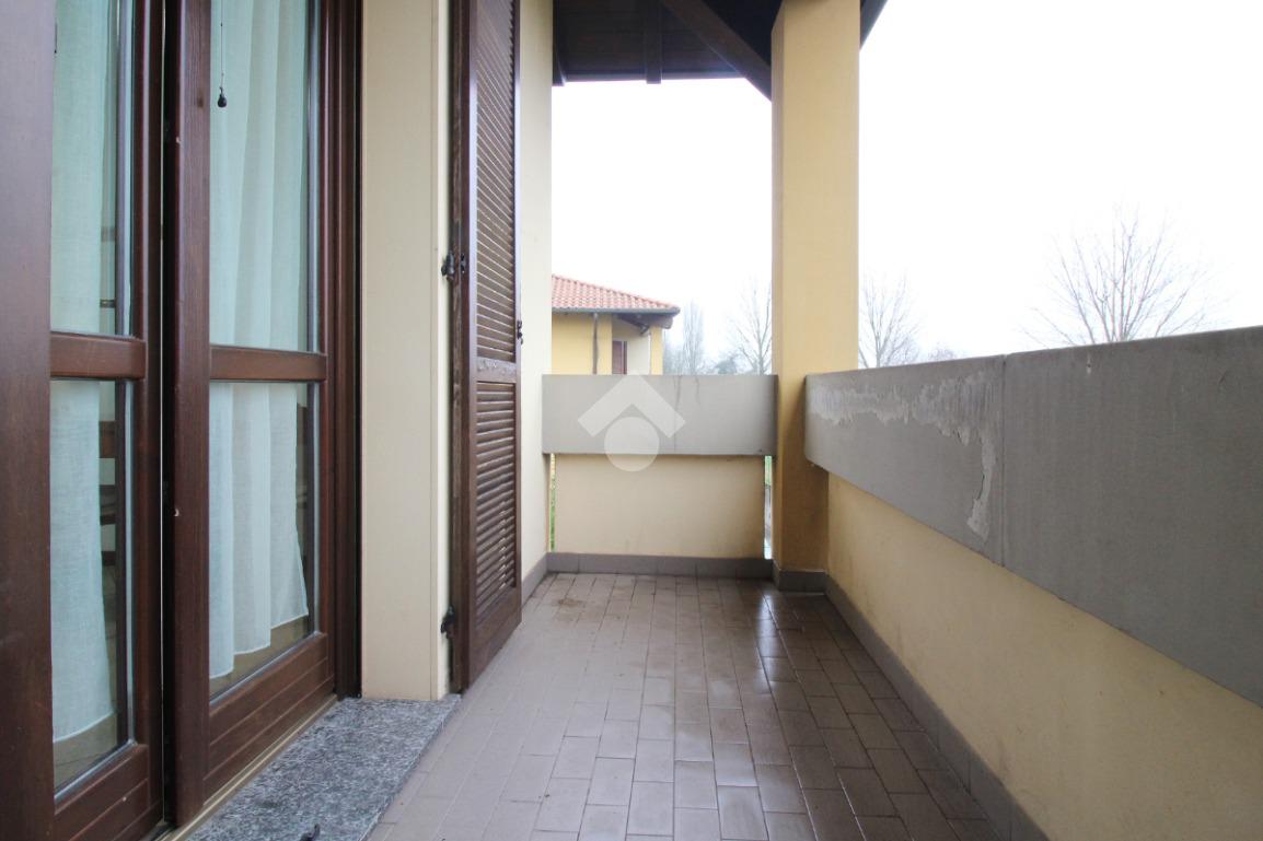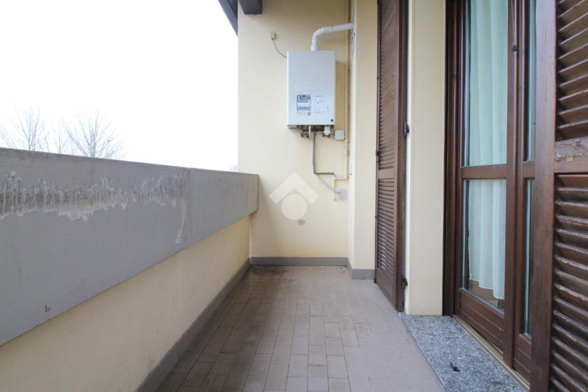 A valorizzare ulteriormente la soluzione è la presenza di un balconcino, che garantisce uno sfogo esterno e una buona luminosità naturale.