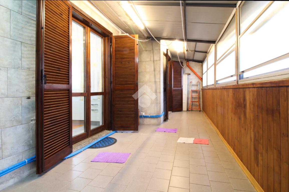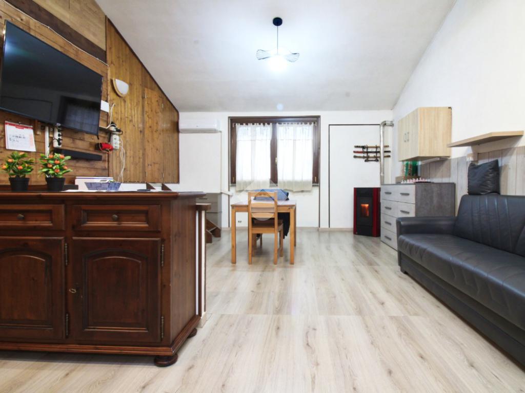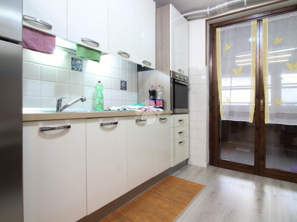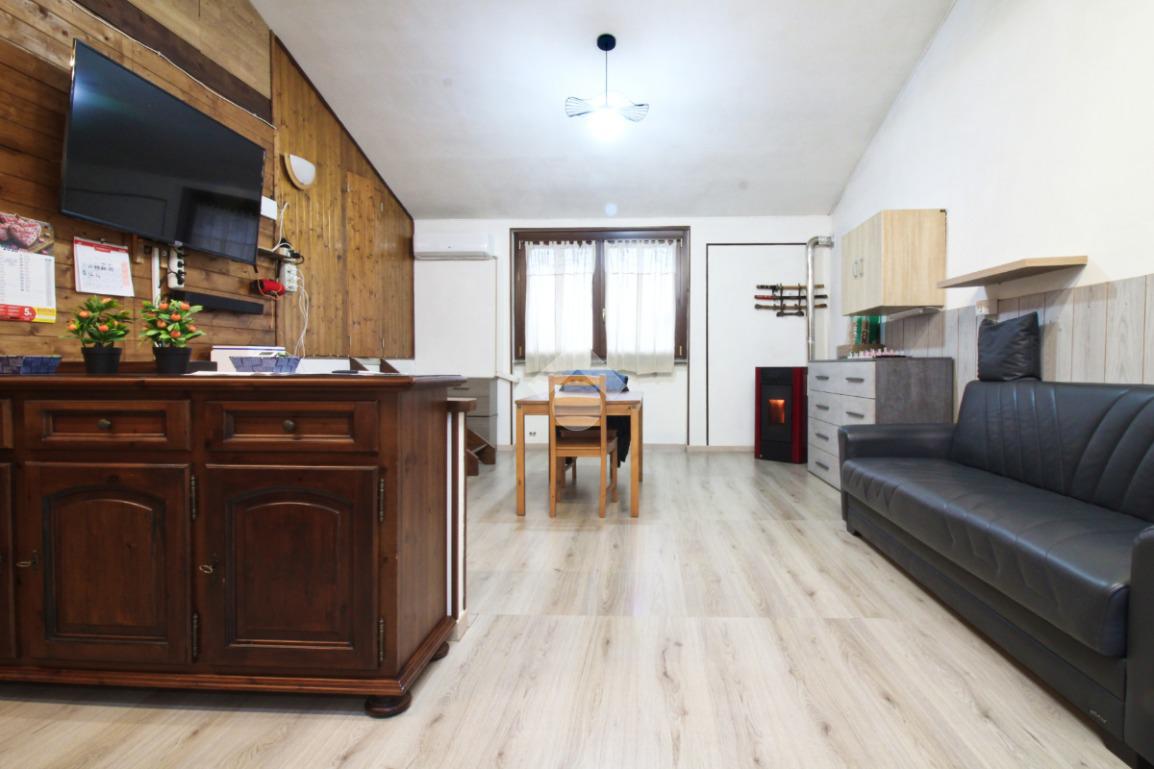 L’immobile è composto da un ampio soggiorno con stufa a pellet, cucina abitabile a vista per tre persone e locale adibibile a studio. Dal soggiorno, tramite porta finestra, si accede al terrazzo/verandato, dove è stato ricavato un angolo lavanderia.